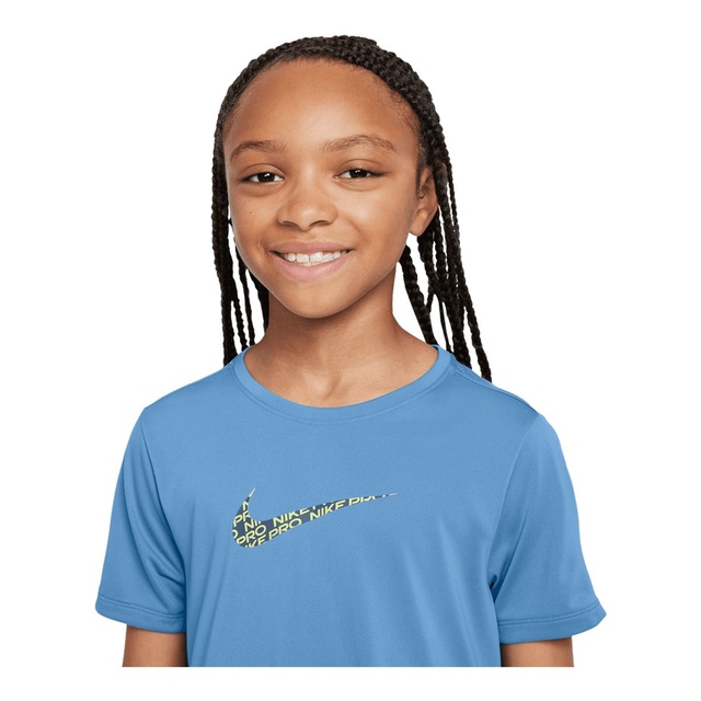 Soft and lightweight, the Nike Girls' Dri-FIT One Sport T-Shirt is designed to keep them dry and comfortable. Made from moisture-wicking fabric, it features Dri-FIT technology that pulls sweat away from the body for quick evaporation. The crewneck and short sleeves ensure mobility, while the relaxed fit allows easy movement.