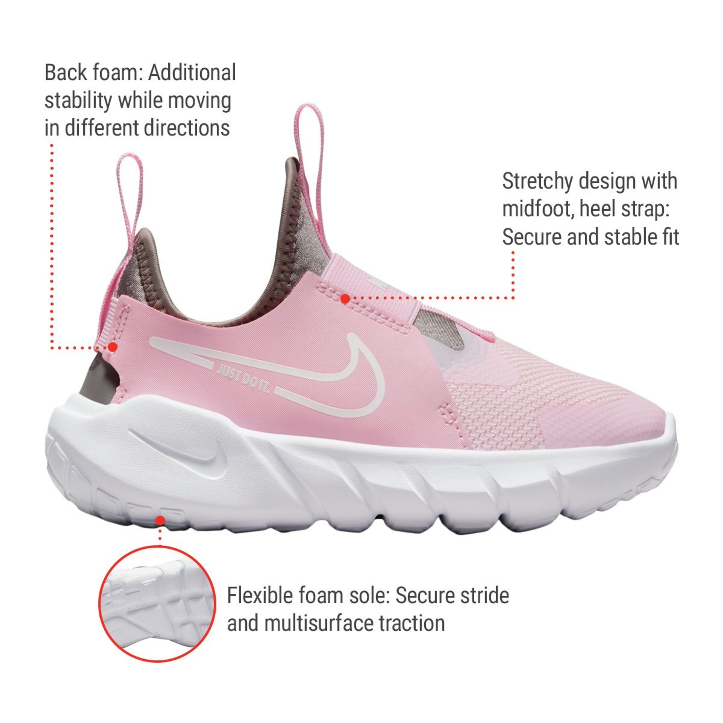Who’s ready to play? The Nike Flex Runner 2 is built for the kiddo on the go—from the playground to wherever their day takes them. It’s laces-free! Meaning it’s super quick to slip on and off. The straps and bootie-like design make sure your little one’s fit stays snug while they run and jump.