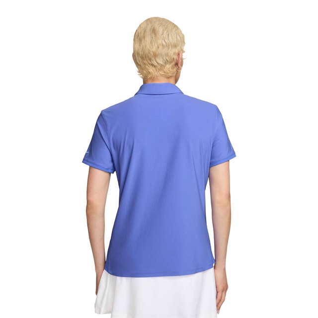 Elevate your style with the Nike Golf Women's Victory Polo T-Shirt. Crafted from ultra-smooth, stretchy fabric, this t-shirt ensures you stay focused on your swing. The classic design includes a 4-button placket and an embroidered Swoosh logo, while the ribbed cuffs and hem insets add a stylish touch.
