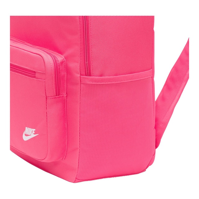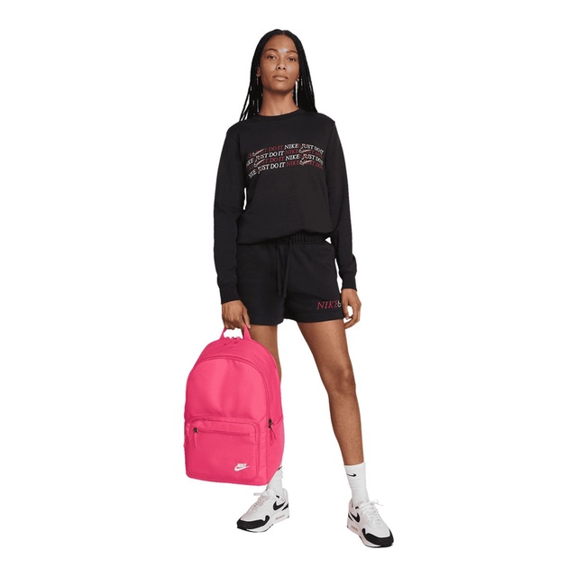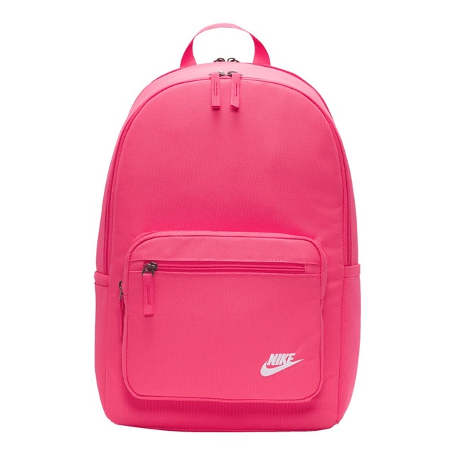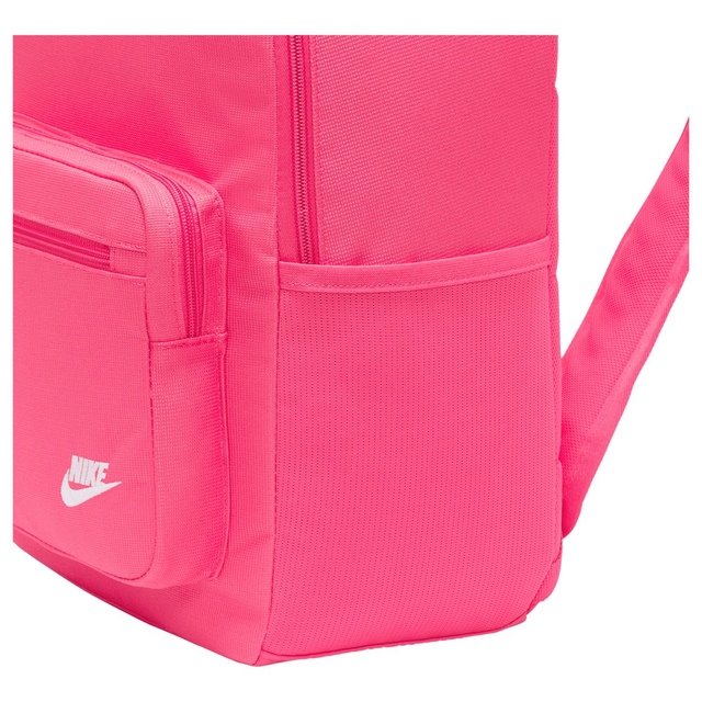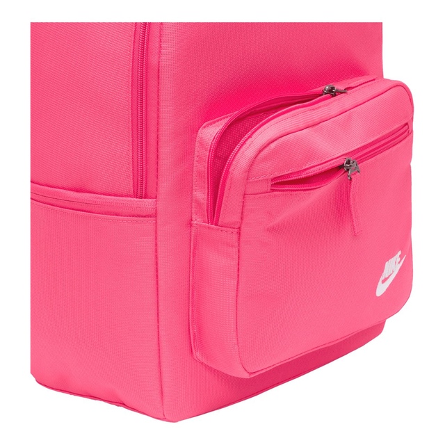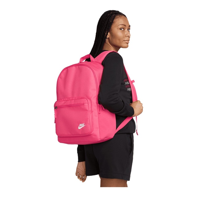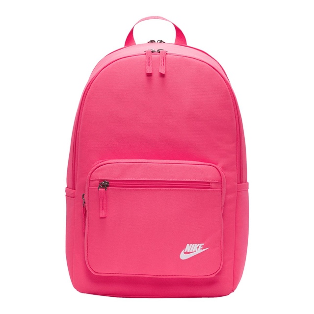 Ready to take to work or school, the Nike Sportswear Heritage Backpack updates a classic look with smart storage options to keep your electronics stored securely. Internal padded sleeve provides quick access to your laptop while front and side accessories pockets help keep your cords, calculator, and phone organized and easy to find. Padded shoulder straps and an easy carry haul loop make it easy to grab your gear and go. Densely woven polyester provides heavyweight support. Water-resistant coating helps keep your gear dry. Side pocket holds water bottle upright during carry. Internal padded sleeve can store up to a 15 inch laptop. Zippered main compartment offers room for your gear. Zippered front pouch provides small-item storage. Shoulder straps and back panel are padded for comfortable carrying.