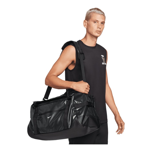 Take your gear from car to campsite with the Nike Hike Duffel. Its water-resistant fabric works with a storm flap over the zipper of the spacious main compartment to help keep your gear dry.