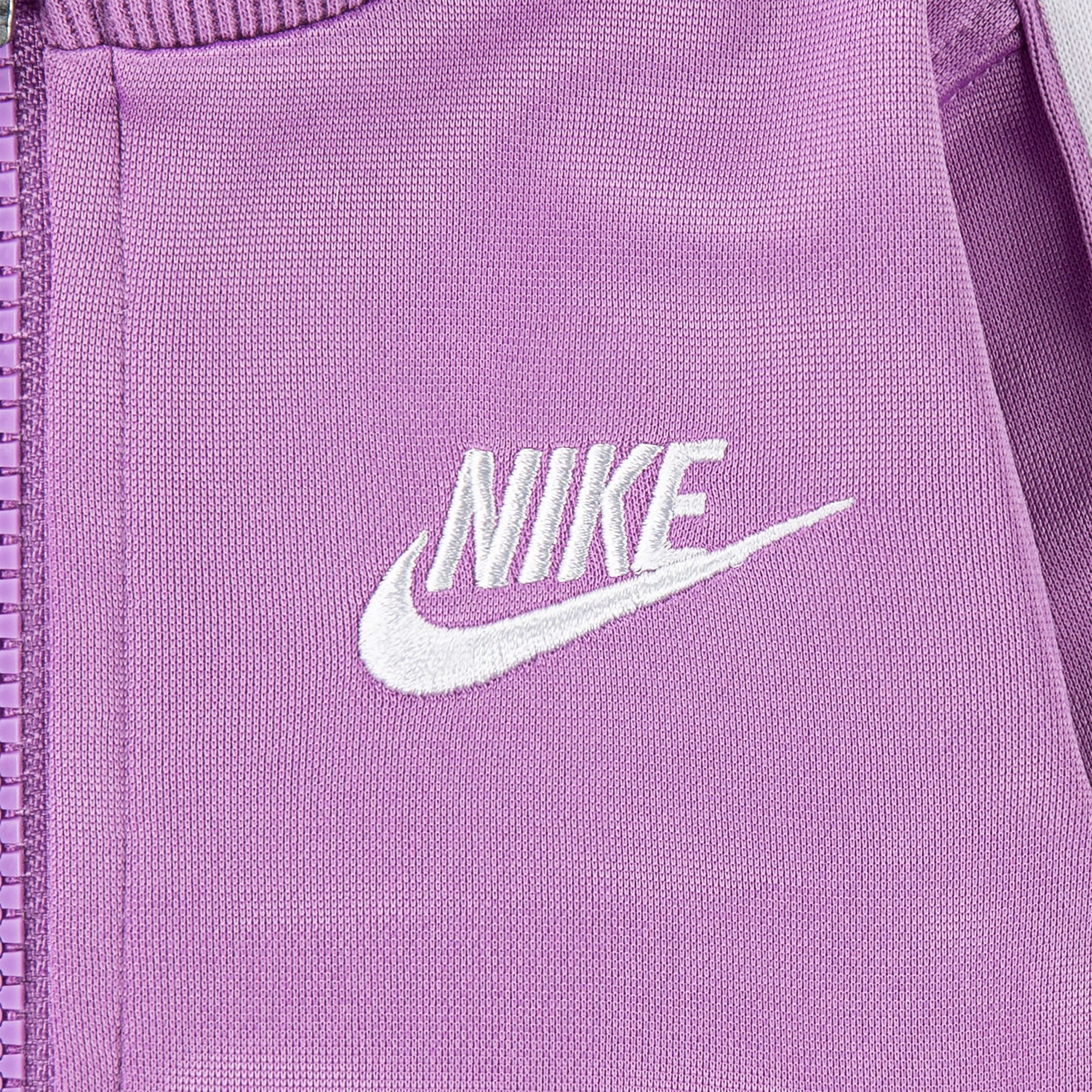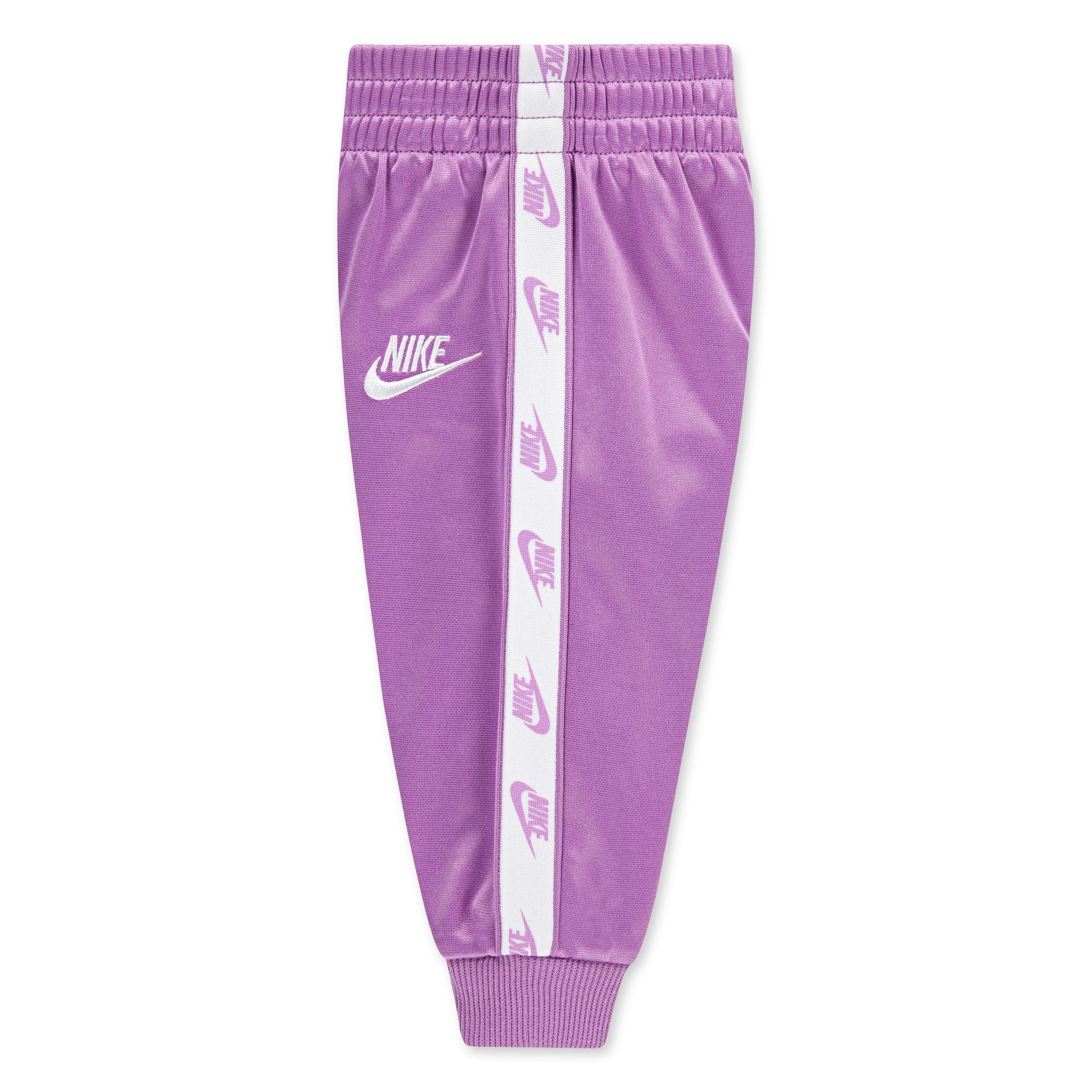 The Nike Infant Girls' Logo Taping Full Zip Set is a dynamic athleisure outfit designed to keep your little one comfortable and stylish during active play. With convenient details like ribbed cuffs and hems, an elastic waistband, and hand pockets, this set delivers optimal comfort and functionality for your energetic little girl.