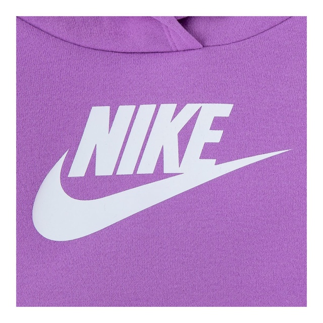 Soft and stretchy fleece sweatshirt with a standard hood, kangaroo pocket and ribbed waistband and cuffs. Paired with cozy fleece pants with elastic waistband and cuffs for everyday comfort. Finished with matching Nike Futura logos.