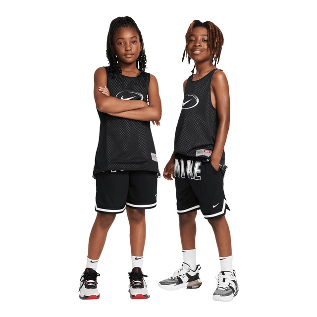 The Nike Kids' Basketball Reversible Tank offers versatile comfort on the court. This tank's lightweight, breathable design ensures freedom of motion and cooling airflow. The reversible feature provides two looks, making this Nike tank top perfect for practice or play.