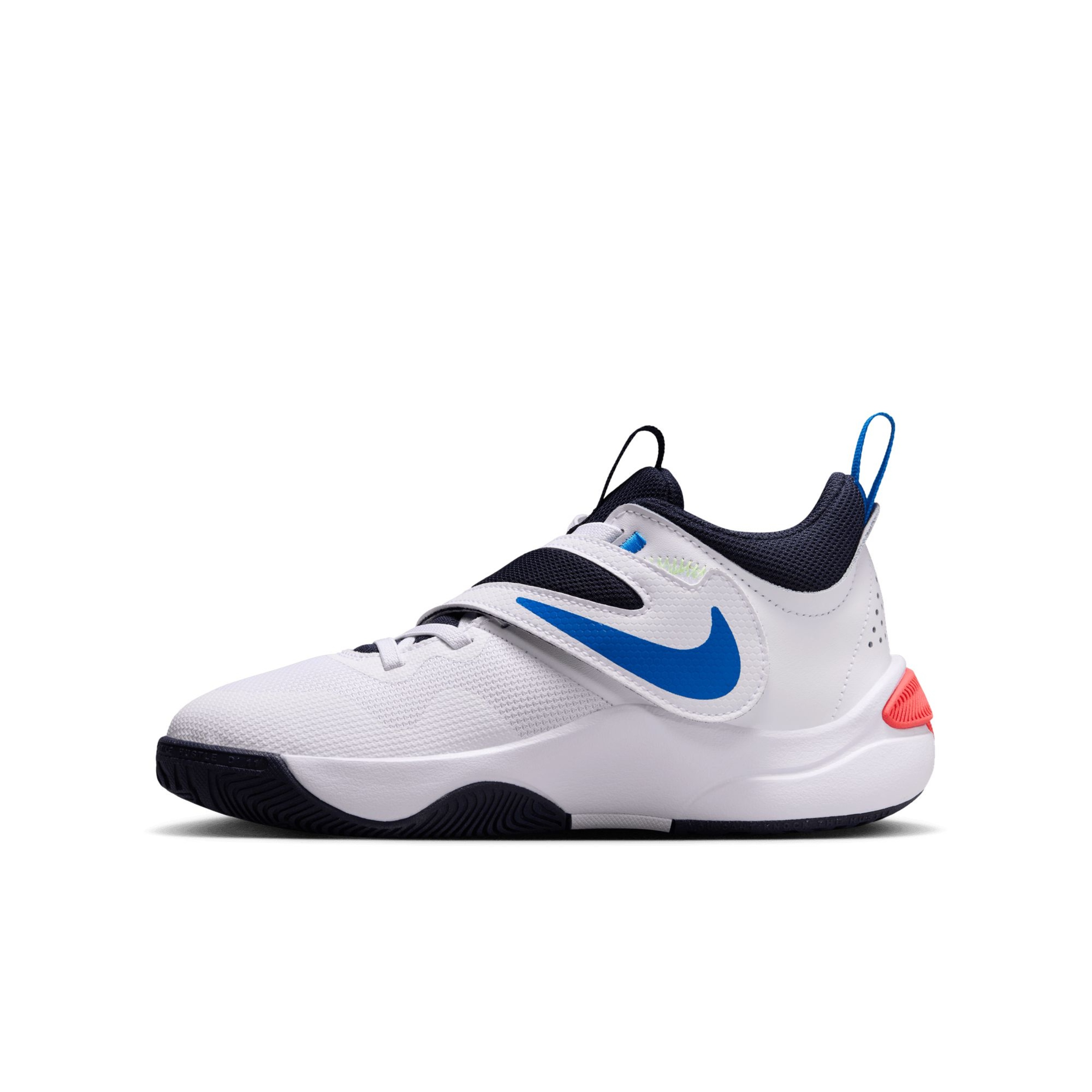 Meet the Nike Kids' Grade School Team Hustle D 11 Basketball Shoes for gym class or just playing outside. With this edition of our Team Hustle D series, our top priority is kicks that are super easy to take on and off. Elastic laces give you a wide opening while a big strap secures your fit. Plus, you get plush cushioning. The ultimate basketball and recess shoe is back and ready to play.