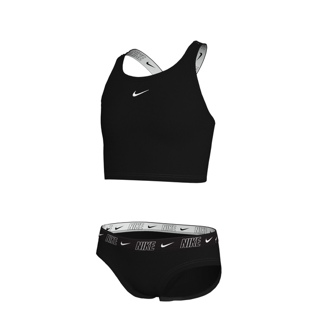 Maximize your summer in the Nike Kids' Logo Tape Two Piece Tankini Set with a fun print and plenty of coverage to keep you out of the sun's rays. A crossback design lets you move freely, while a standard coverage bottom and a full lining helps keep you comfortable in and out of the water.