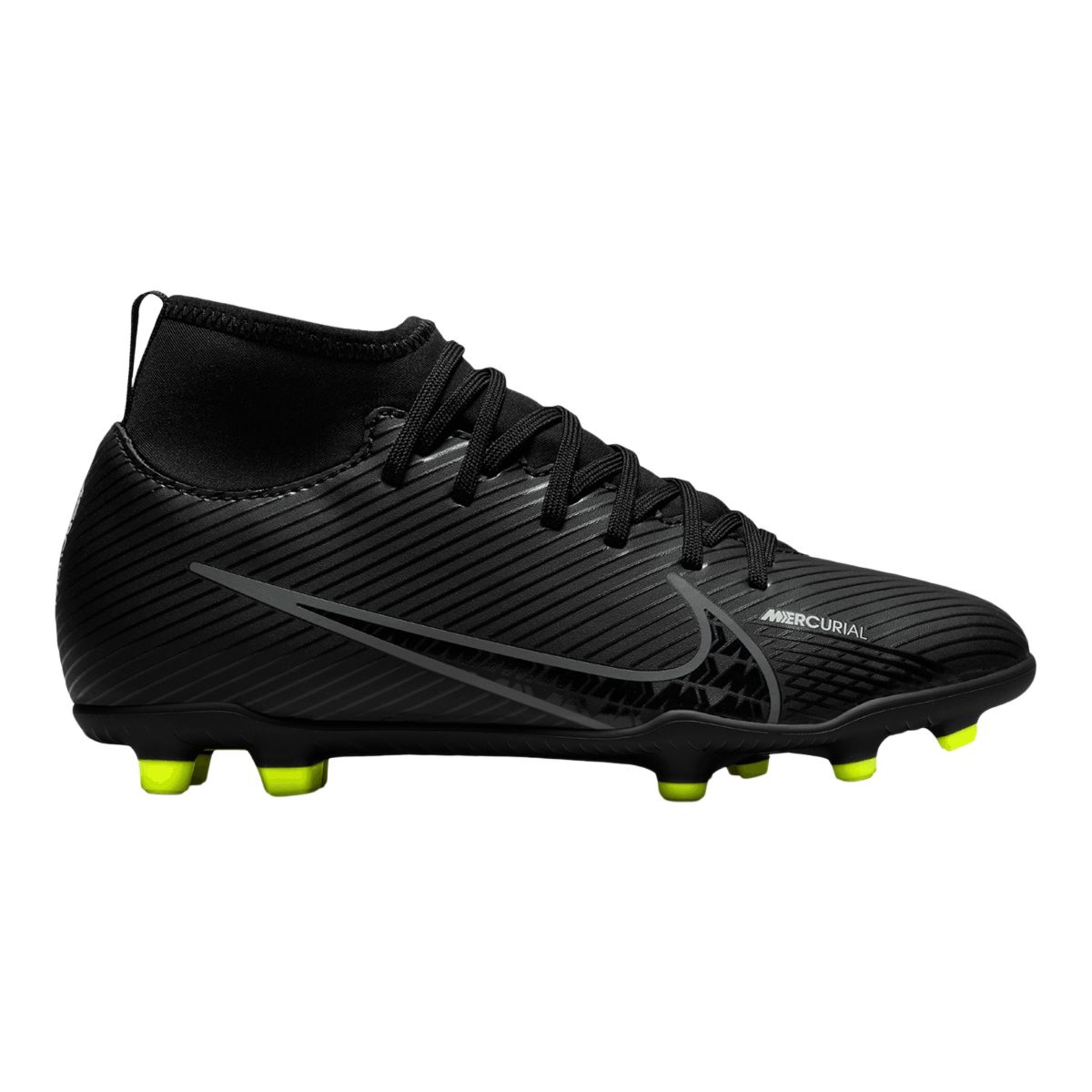 The Nike Kids' Merc Superfly 9 Club Firm Ground High-Top Soccer Cleats are designed to hold up for practice during the week and games on weekends. These firm ground cleats offer versatility, from artificial grass to real grass surfaces. They have the traction young players need to run and cut on different types of fields. With a seamless design, these kids' soccer cleats have a comfortable lining that wraps around the foot and provides a close-fitting feel.