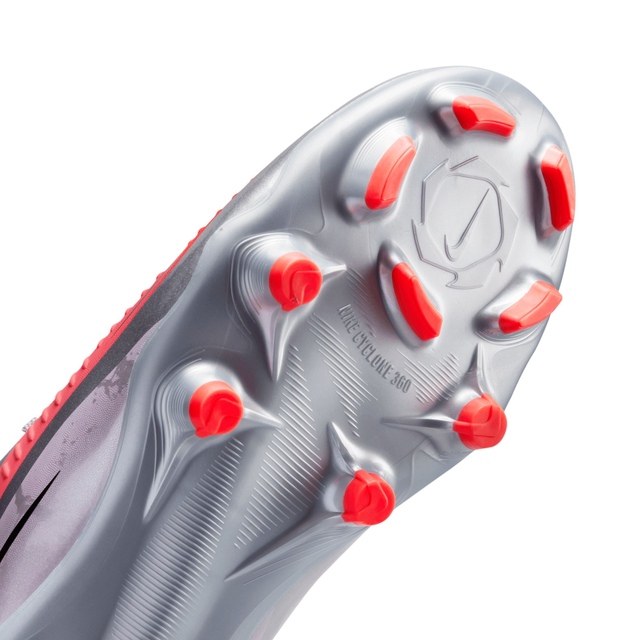 Level up your accuracy with the Nike Phantom 6 Academy. It powers your precision with a NikeSkin touch zone, located where you need it for clean strikes. The grippy texture helps you take advantage of scoring opportunities by bringing your foot closer to the ball. An expanded NikeSkin touch zone, powered by engineered mesh, enhances control while dribbling and passing, even in wet conditions. Strategically placed in the forefoot, the Cyclone 360 circular traction pattern helps you plant and pivot with speed. A new shoe frame provides a more natural fit, especially in the toe box, moulding to your foot for better boot-to-ball strikes. Designed for use on natural and synthetic surfaces, it also features a cushioned sockliner for added comfort.