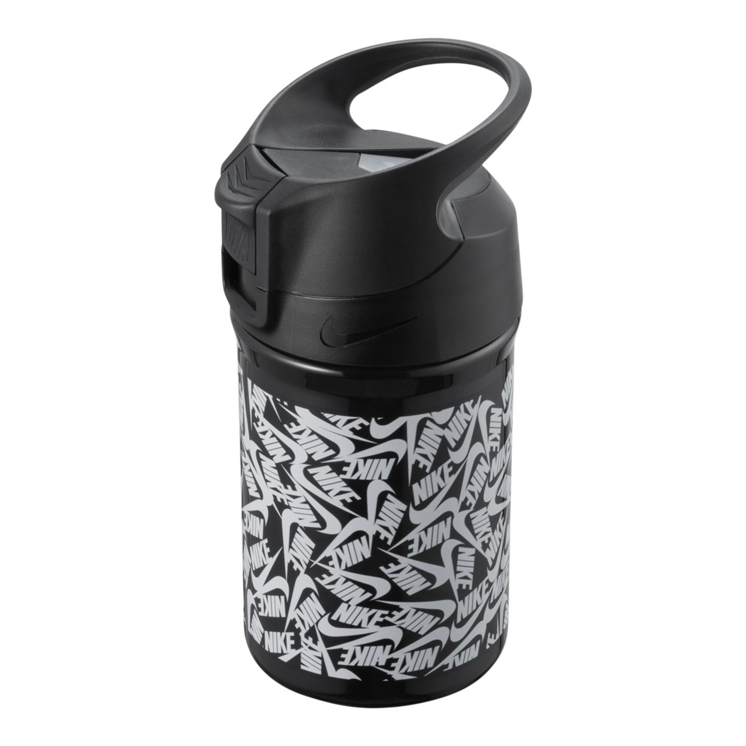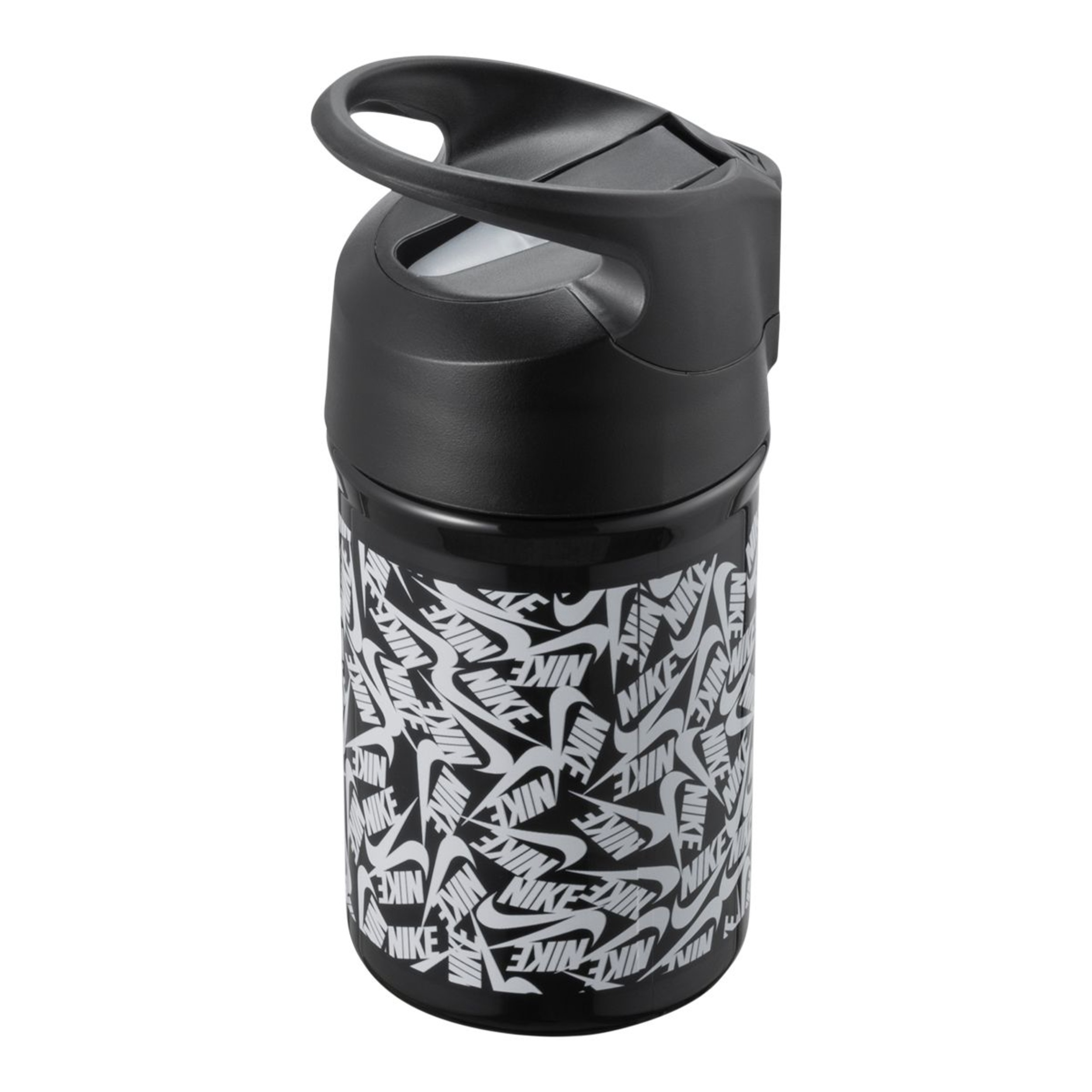 The Nike Kids' TR Hypercharge 12 oz Water Bottle features a one-handed slider button for easy access, a detachable soft straw tip for simple cleaning and an ergonomic handle for effortless carrying. This Nike water bottle is BPA-free and dishwasher safe, ensuring safety and convenience for daily use.
