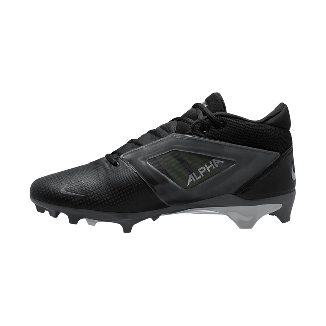 The Nike Men's Alpha Menace 4 Pro Football Cleats are designed for playmaking and explosive power on the gridiron. Boasting better durability and breathability throughout the upper, these cleats are capable of sudden movements, stops and stability when it counts most. The synthetic leather and mesh upper provides durable comfort, while the molded heel with internal counter offers a cool on-field look with extra support. The plastic quarter cage in the upper delivers great shielding and stability when the game gets rough.