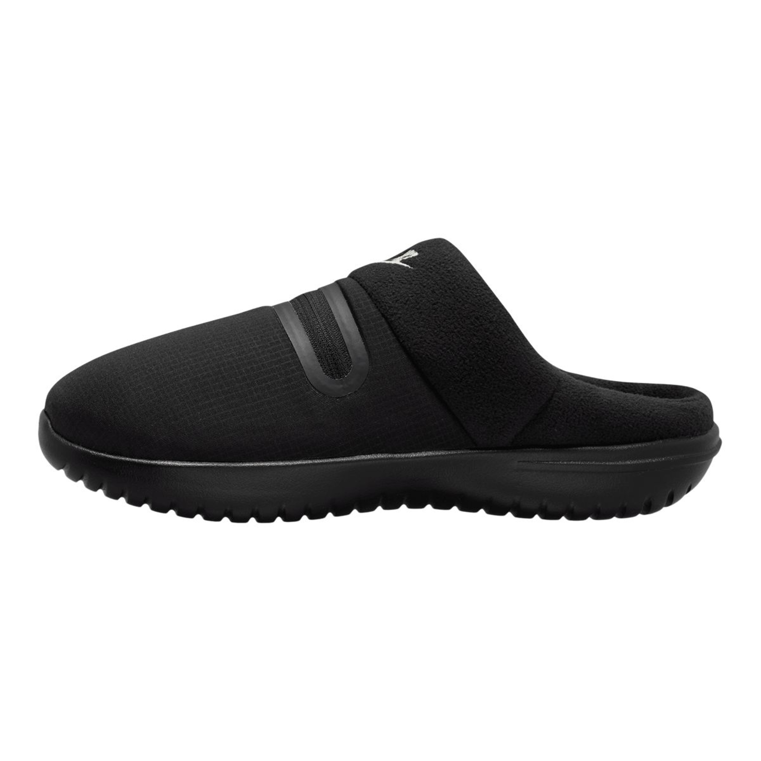 The Nike Men's Burrow Slip-On Indoor Slippers transition from indoor comfort to outdoor use. The fleece-like lining provides warmth, while the Nike Victori foam midsole/outsole cushions each step with responsive comfort. The durable outsole of these Nike slippers ensures grip on various surfaces.