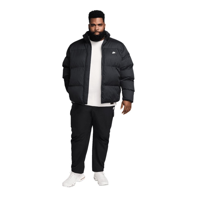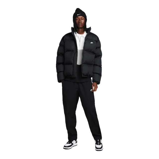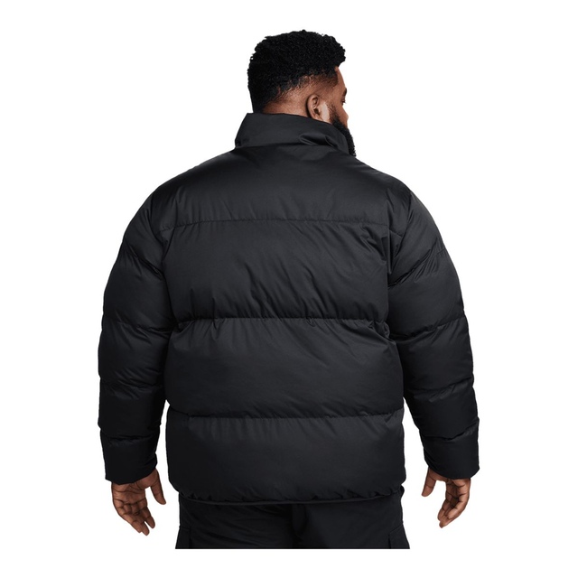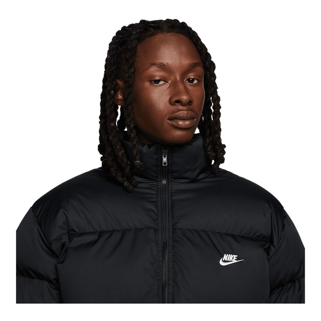 The Nike Men's Club Puffer Jacket offers lightweight warmth and water resistance in a sleek, streamlined design. Crafted with water-repellent ripstop fabric and filled with PrimaLoft® Thermoplume insulation, this puffer jacket traps body heat while shielding you from wind and rain. Stretchy cuffs and a snug hem help seal in warmth, making this an ideal insulated jacket for cold, damp days.