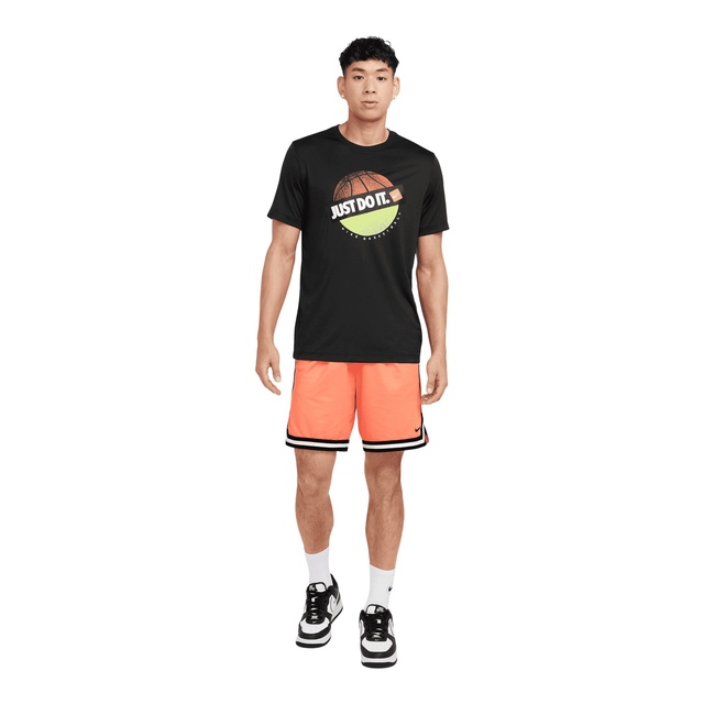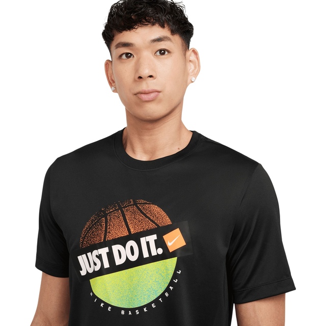 The Nike Men's Dri-FIT Basketball T-Shirt offers a vintage hoops style with modern performance technology. This breathable, lightweight jersey tee features Nike's innovative Dri-FIT moisture-wicking fabric to keep you cool and dry on the court. Its smooth, classic fit allows unrestricted movement as you sink jump shots and drive to the hoop.