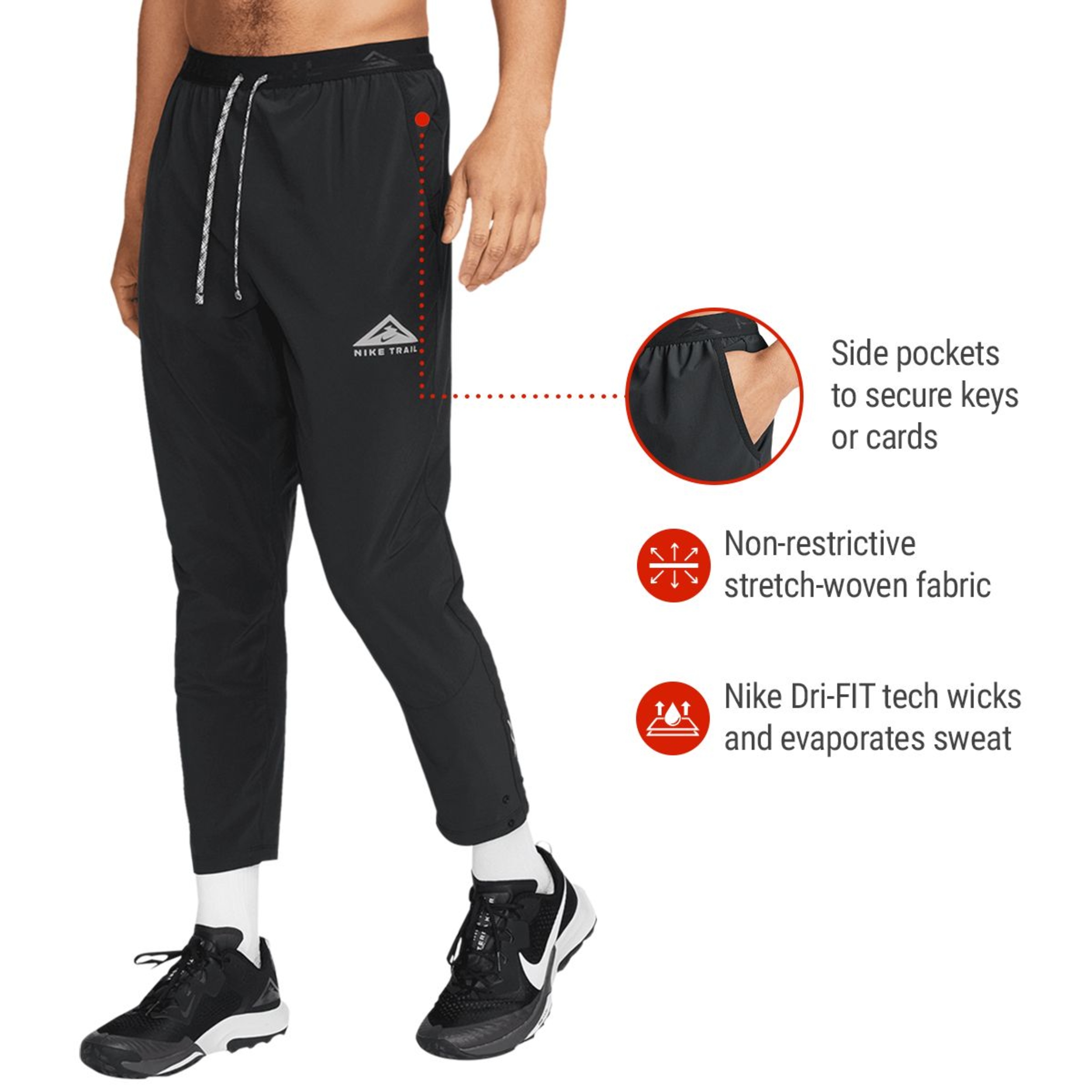 Nike Trail Dawn Range Men's Dri-FIT Running Pants Nike used insights from trail runners like you to create these stretchy, lightweight pants to let you get the most out of your movement.