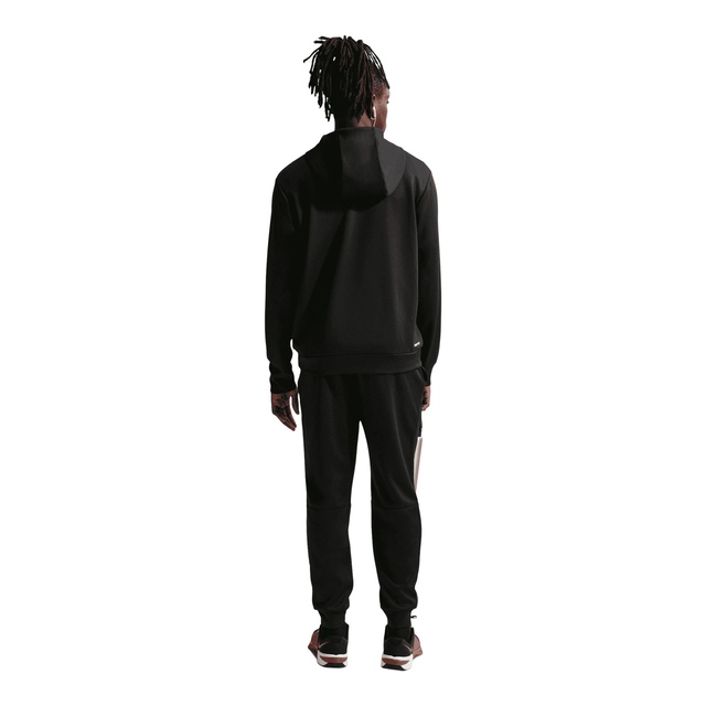 Soft and sweat-wicking, this Nike hoodie combines performance technology with a classic fit to help you move comfortably in and out of the gym. Nike Dri-FIT technology moves sweat away from your skin for quicker evaporation, helping you stay dry and comfortable. It provides UVA and UVB protection from the sun in the areas covered by the garment. The hoodie features a hood with a drawcord, a front pocket, and ribbed hem and cuffs.