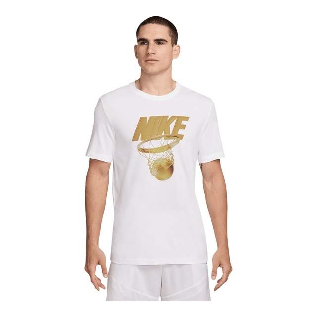 The Nike Men's Dri-FIT Hoop T Shirt is crafted from a soft, lightweight cotton-poly blend that offers superior breathability. Nike's innovative Dri-FIT technology actively wicks moisture away from your body, allowing sweat to evaporate quickly so you stay dry and comfortable during intense workouts or athletic activities.