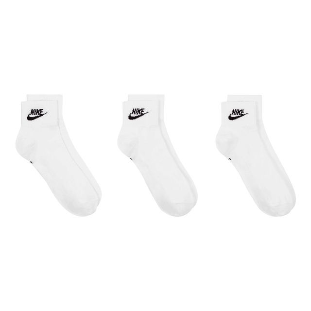 Nike Men's Everyday Essential + Cushioned Ankle Socks offer exceptional comfort and performance for everyday activities. Featuring Dri-FIT technology, these breathable socks wick away moisture to keep your feet dry and comfortable. The thick terry sole provides plush cushioning and impact absorption, while the knit upper offers enhanced ventilation. An arch band ensures a snug, supportive fit, and the 1/4 length design covers the ankles.
