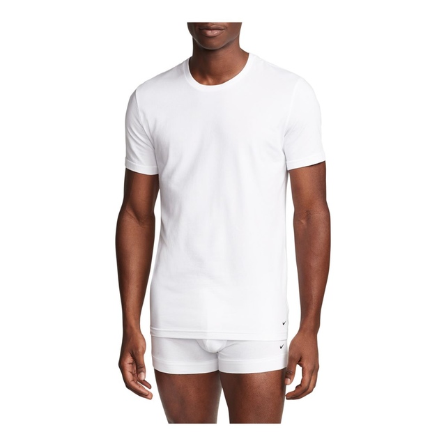 Perfect for everyday wear, the Nike Men's Dri-FIT Essential Cotton Stretch Slim Fit Crew Neck Undershirt comes in a convenient two-pack. Made with a blend of soft cotton and stretch fibres, this undershirt offers a comfortable fit that moves with you. The Dri-FIT technology wicks away moisture, keeping you dry and comfortable throughout the day.