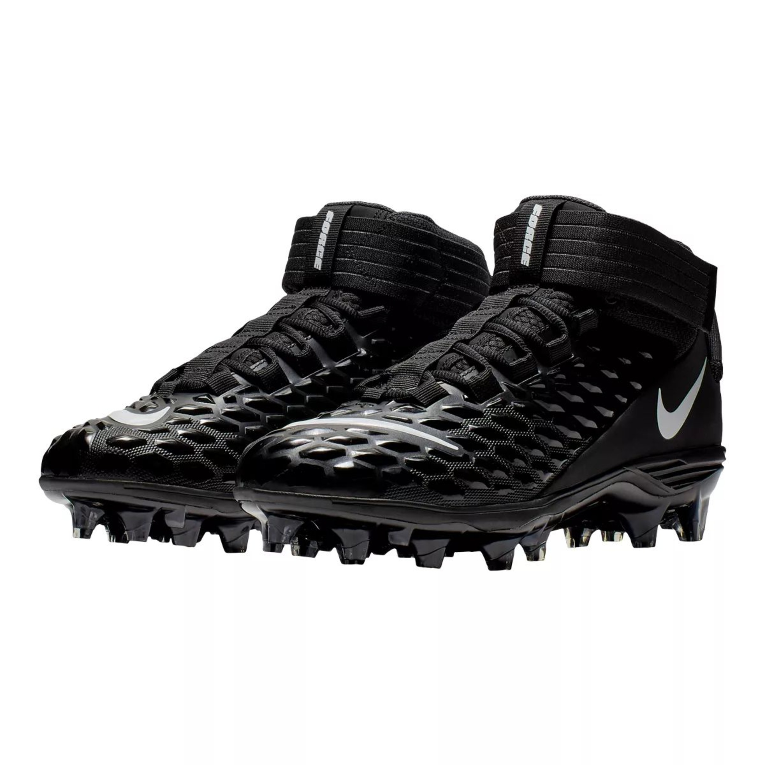 These boots were made for football. The Nike Force Savage Pro 2 brings durability and stability where you need it most - right on the pitch. Synthetic materials in the upper and laces that engage with built-in webbing lock you in for support and comfort when tackles are flying. Internal heel pads cup your heel for a secure fit while rubbery rope-like pulls on the heel make these cleats easy to put on and take off between plays. The hooks on the ankle strap ensure your feet aren't going anywhere during the game. With details like reinforced molding, these cleats mean business from the opening kickoff.