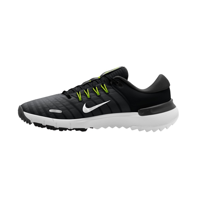 Nike Free Golf NN Golf Shoes A blast from the past, the Nike Free Golf uses some of Nike's favorite running footwear technology to make it even more functional than before. It's Nike's lowest-to-the-ground golf shoe, offering freedom when you're on the hoof or housing an approach shot from deep. Flexible for Your Round Nike Free technology in the forefoot offers flexibility, helping you move with ease. Secure Feel Brio cables are tunneled into the upper to secure the shoe's upper to the outsole, a way to provide strength and support without adding bulky materials. Wet traction rubber pattern helps keep you upright when in wet conditions. Tough plastic clip around the heel helps give you stability.