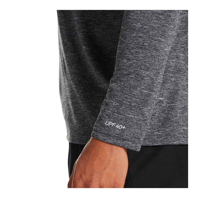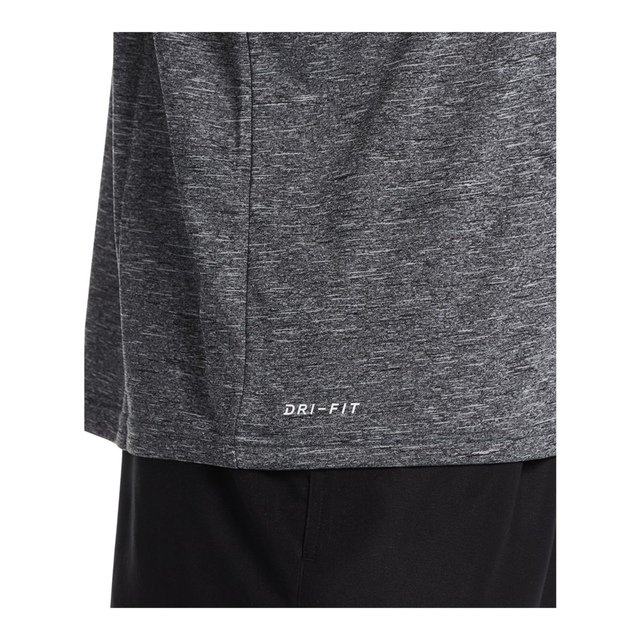 The Nike Men's Heather Hydroguard Long Sleeve Swim Shirt is an essential swim cover-up designed with Nike's signature Dri-FIT technology to wick away moisture and keep you cool and dry. Made from soft, stretchy heathered fabric, it offers a flexible fit with unrestricted range of motion, perfect for swimming laps or lounging poolside.