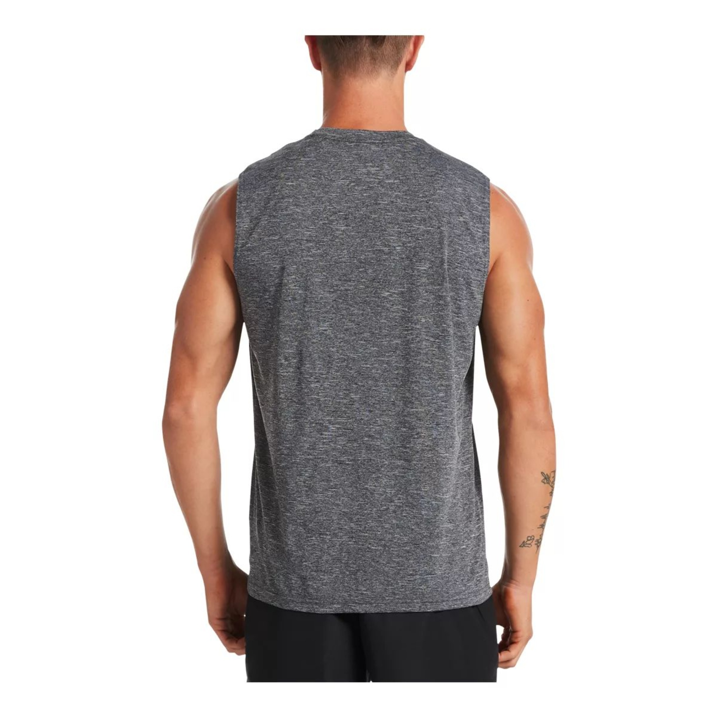 The Nike Men's Heather Hydroguard Sleeveless utilizes Nike's innovative Dri-FIT™ technology to keep you cool and dry whether swimming laps or relaxing on the beach. This heathered top offers plenty of stretch in the fabric for an adaptive, flexible fit that allows a full range of motion. With UPF 40+ sun protection, the covered areas of your skin are shielded from harmful UV rays.
