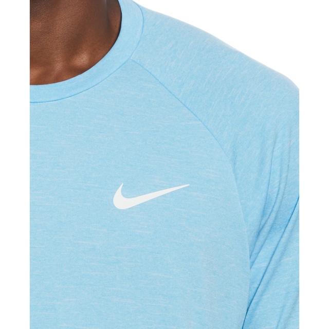 This Nike Hydroguard tee combines breathable comfort with UV protection. The soft, lightweight fabric wicks moisture to keep you cool and dry even during intense training. An internal neck tape prevents chafing while the UPF 40+ fabric shields your skin from the sun's harmful rays. The minimalist Nike Swoosh logo adds signature style without compromising performance. With its dri-fit technology and smooth neckline, this tee lets you push through your workout in total comfort. Stay shielded from the elements in this performance tee built for all-day wear.