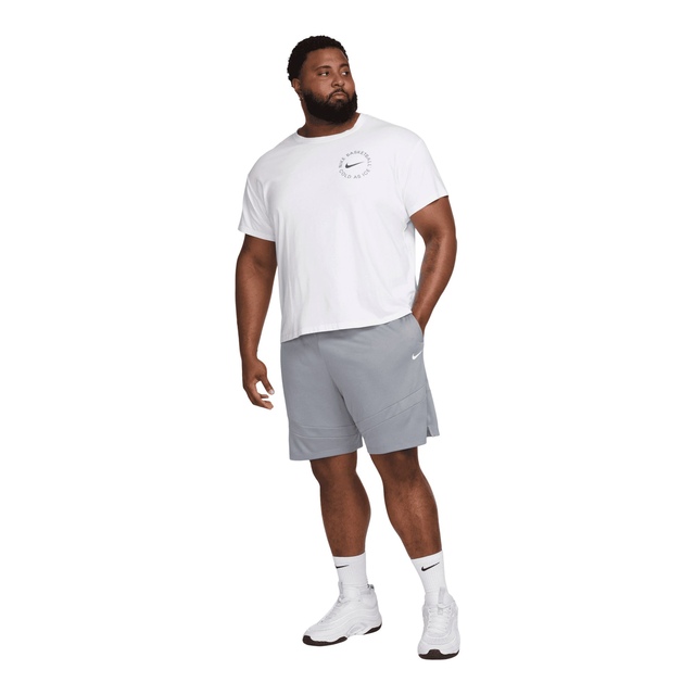 The Nike Men's Icon+ 8" Shorts deliver iconic athletic style for both the court and casual wear. Crafted with Nike's revolutionary Dri-FIT technology, these moisture-wicking shorts pull perspiration away from your body to evaporate quickly, ensuring you stay cool and dry during intense games or workouts. The lightweight knit fabric offers a smooth, comfortable feel against your skin, while the classic 8-inch length provides ample coverage and freedom of movement. With their versatile design, these shorts seamlessly transition from basketball to brunch.