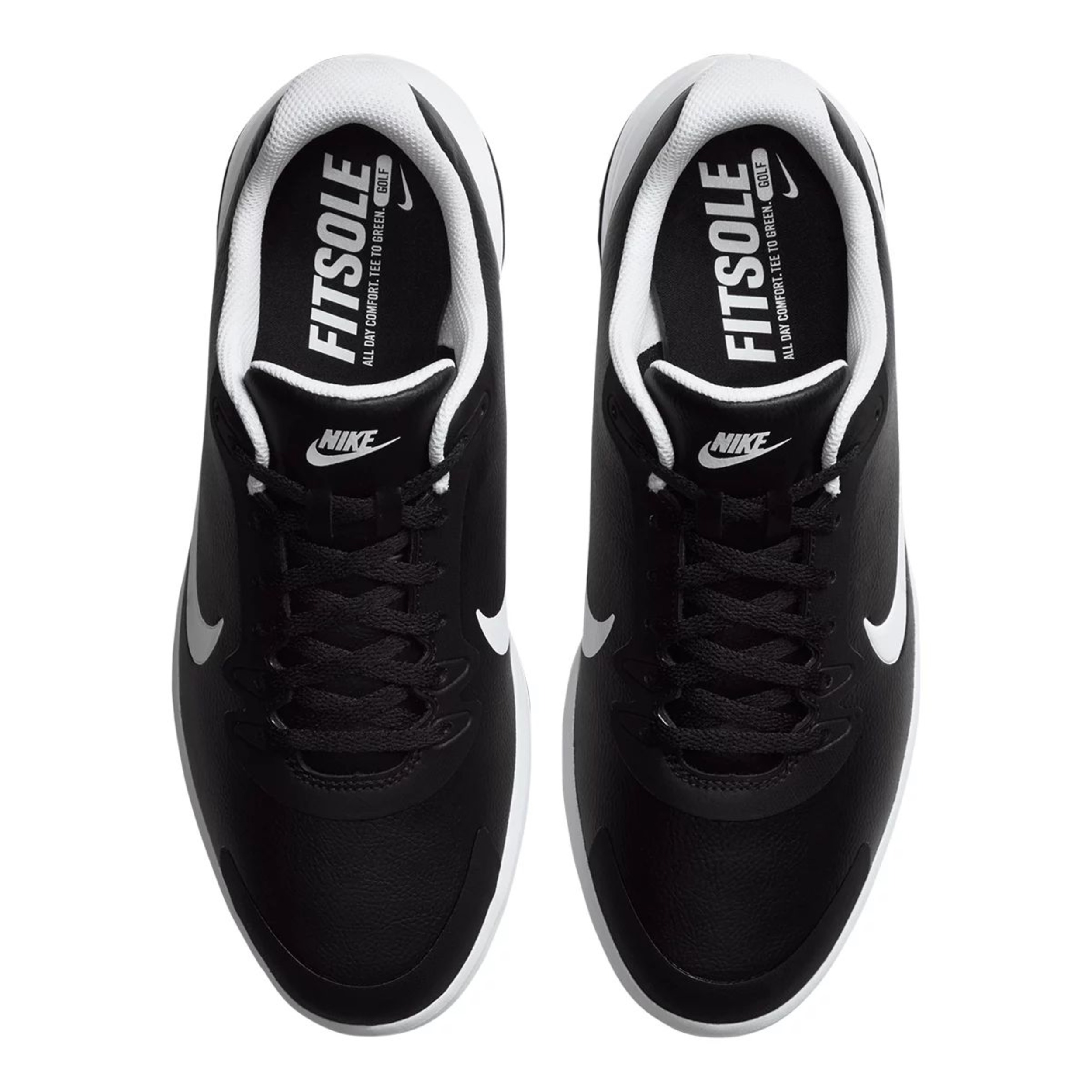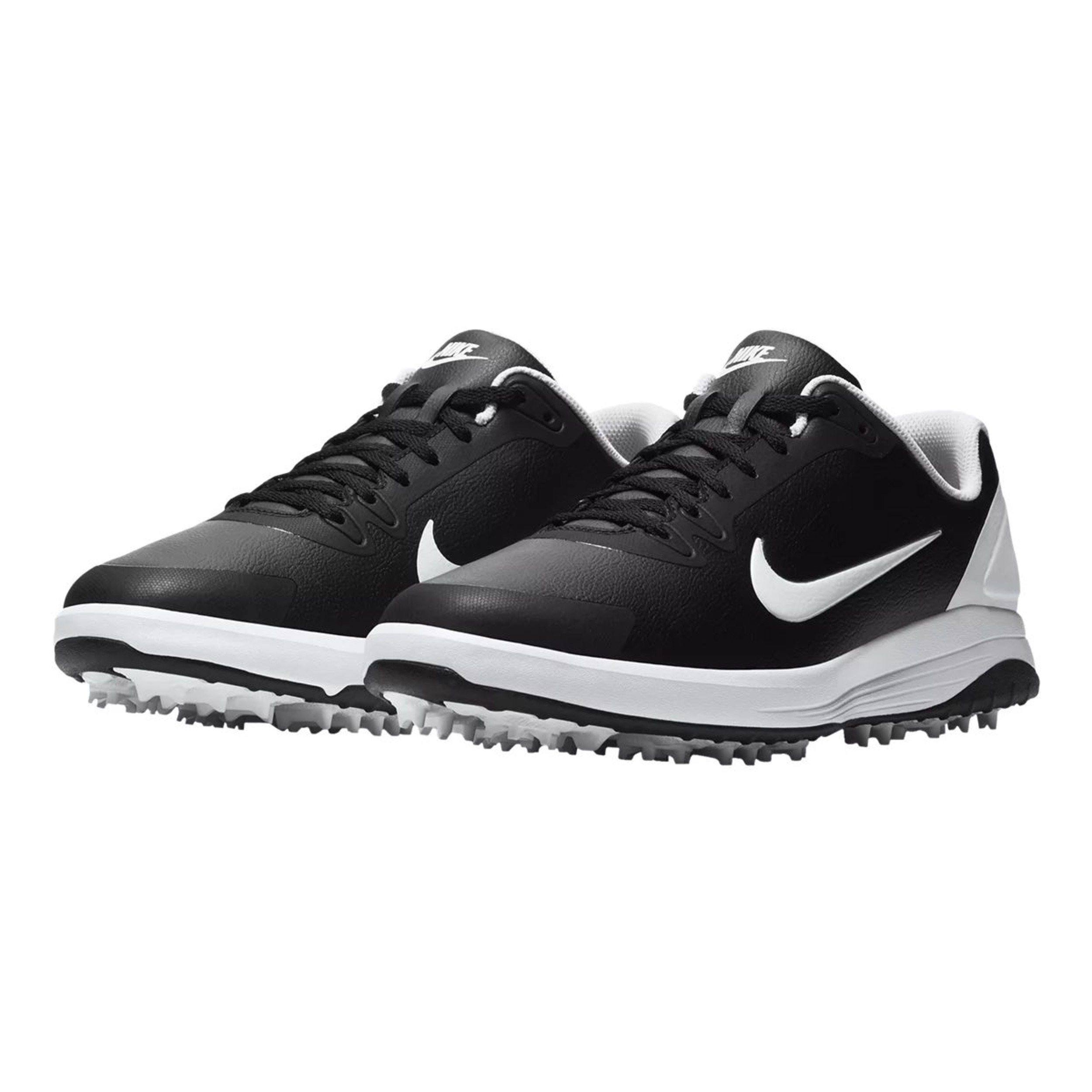 The Nike Men's Infinity G Spiked Leather Golf Shoes are designed for cushioned comfort from tee to green. These spiked golf shoes combine soft foam and integrated traction spikes for plush comfort and grip on different terrains. The sleek, waterproof design helps the feet stay dry in wet weather, while reinforced eyestays provide added durability and stability.
