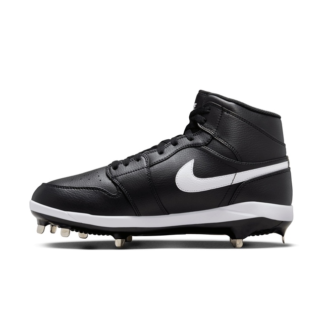 The Nike Men's Jordan 1 Retro MCS Mid Baseball Cleats combine iconic Air Jordan design with on-field performance. The synthetic leather upper provides durable support, while the Nike Air unit in the heel offers responsive cushioning. A Pebax® plate with a 9-cleat configuration ensures exceptional traction for optimal grip during play.