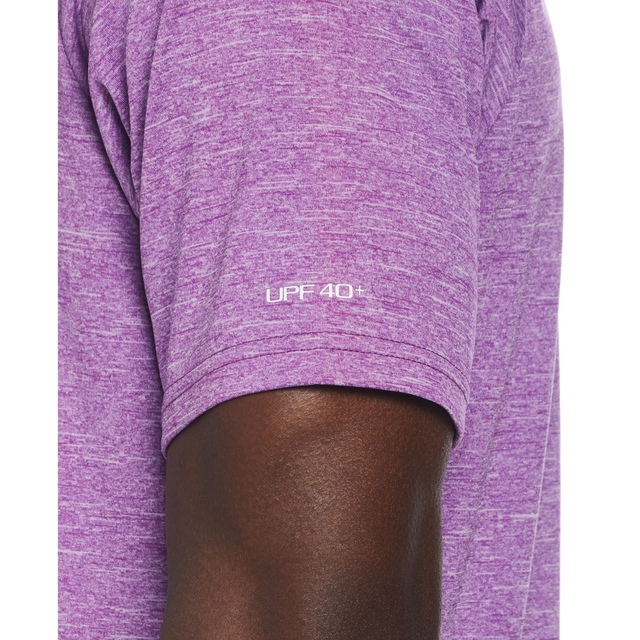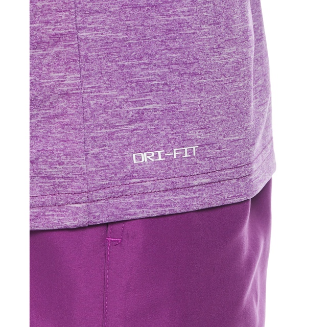 This Nike logo heather T-shirt utilizes advanced fabric technology to keep you cool, dry and protected during workouts. The lightweight Dri-FIT material wicks moisture away from the skin while providing UPF 40+ UV protection from the sun's harmful rays. An internal neck tape offers a smooth, chafe-free feel even during high-intensity training. The subtle Swoosh heat transfer logo and heathered fabric give this tee a stylish, understated look perfect for the gym or outdoor activities. With moisture-wicking performance and UV blocking features, this shirt helps maximize your active lifestyle in comfort.