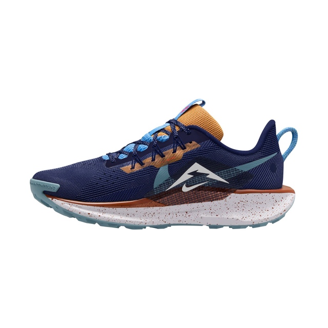 The Nike Men's React Pegasus Trail 5 Running Shoes empower you to spread your wings on rugged paths or paved roads. Equipped with an ultra-responsive ReactX foam midsole, these versatile shoes provide a smooth ride across varied terrain. The tightly woven mesh upper with Flywire technology delivers breathability and a secure midfoot lockdown. With exposed ReactX foam, these Nike running shoes enable a plush feel on roads.
