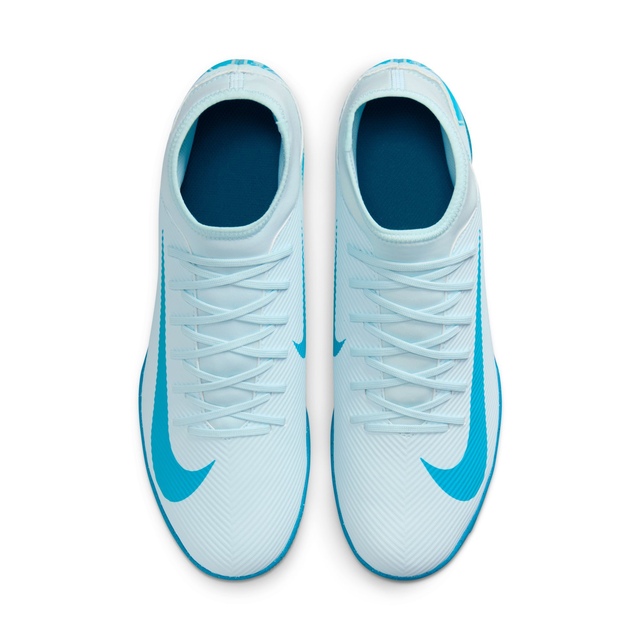 Nike Men's Superfly 10 Club IC Indoor Soccer Shoes let you go full throttle with the speed and control for sharp cuts and dribbles. A molded synthetic upper with textured surface gives you a velvety touch for dribbling at high speeds. The rubber outsole delivers multidirectional traction to conquer indoor courts and street surfaces. You'll get the same precise, contoured fit from the Superfly 9 — but now with an even sleeker toe box and more secure heel feel.
