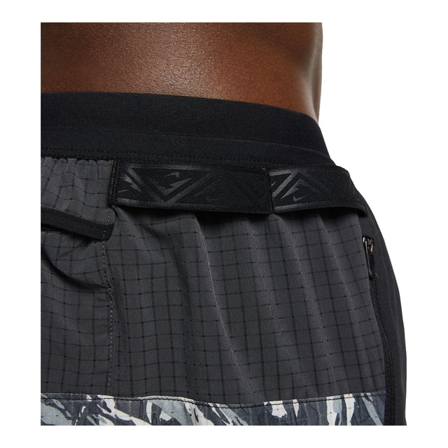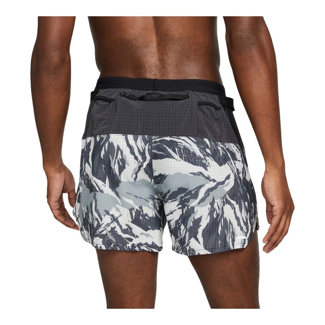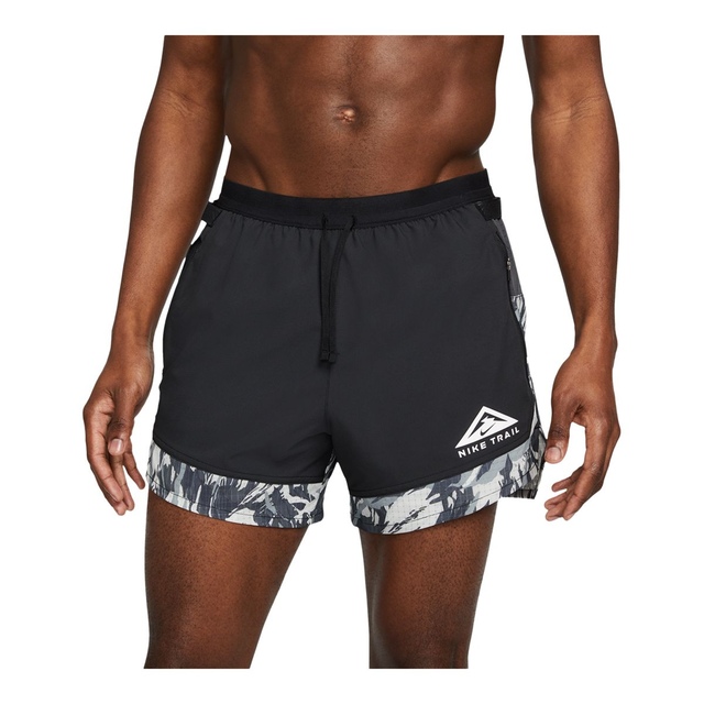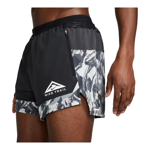 The Nike Men's Trail Run Flex Stride 5-in Dri-FIT Running Shorts provide comfort and utility on the trail. Featuring Nike's Dri-FIT technology, these shorts wick away moisture to keep you dry and comfortable. The stretch-woven fabric in the front and breathable back panels allow unrestricted movement, while five strategically placed pockets, including a secure zippered pocket for your phone, offer ample storage for essentials. The elastic waistband with a drawcord ensures a customizable fit, and loops along the waistband allow you to securely attach additional gear like keys or energy bars. These lightweight shorts are perfect for tackling challenging trails.