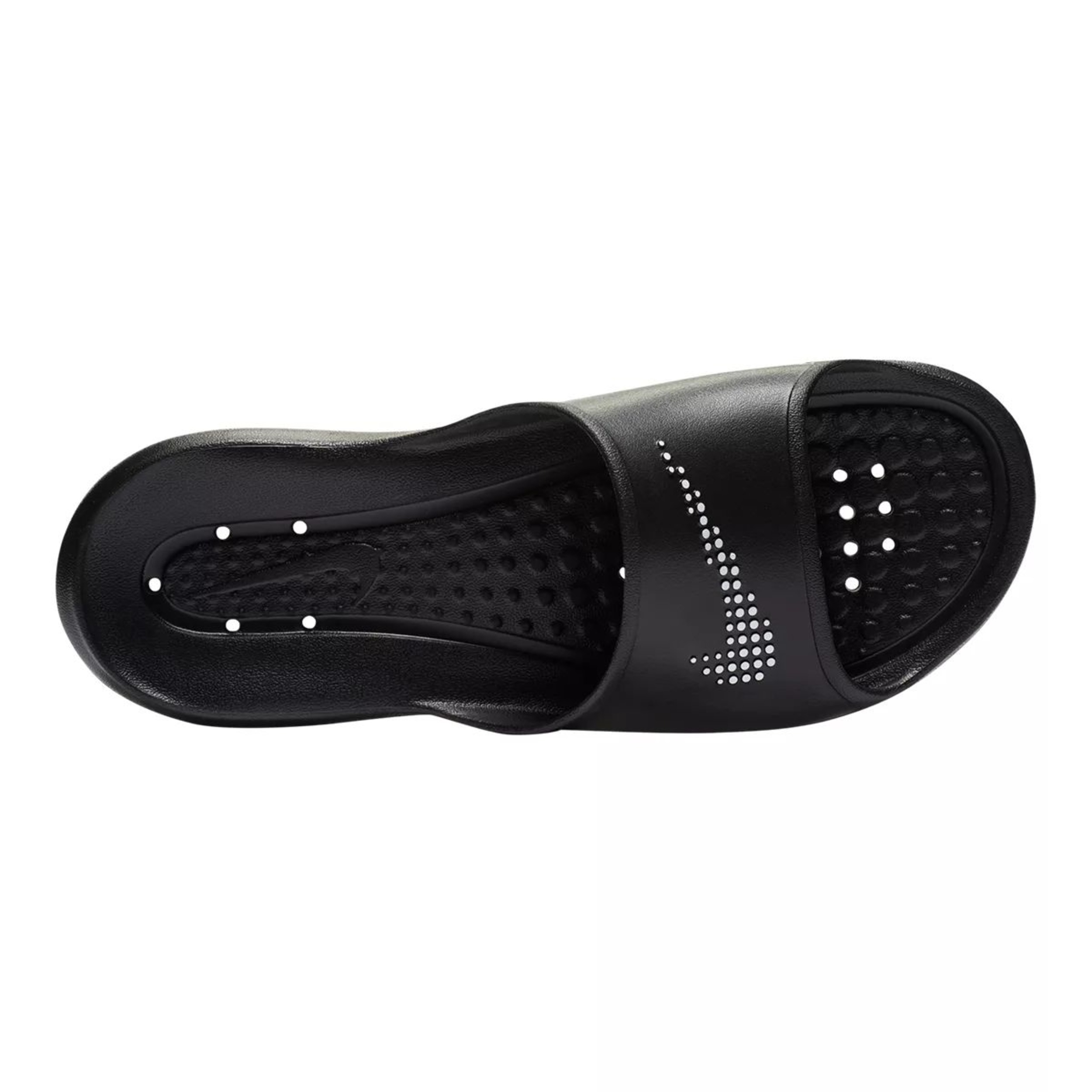 The Nike Men's Victori One Slides offer quick-drying comfort. Made from cushioned foam, they feature a perforated midsole for drainage and air circulation. With a traction-patterned outsole and embossed Swoosh logo, these Victori slides blend functionality with athletic style.