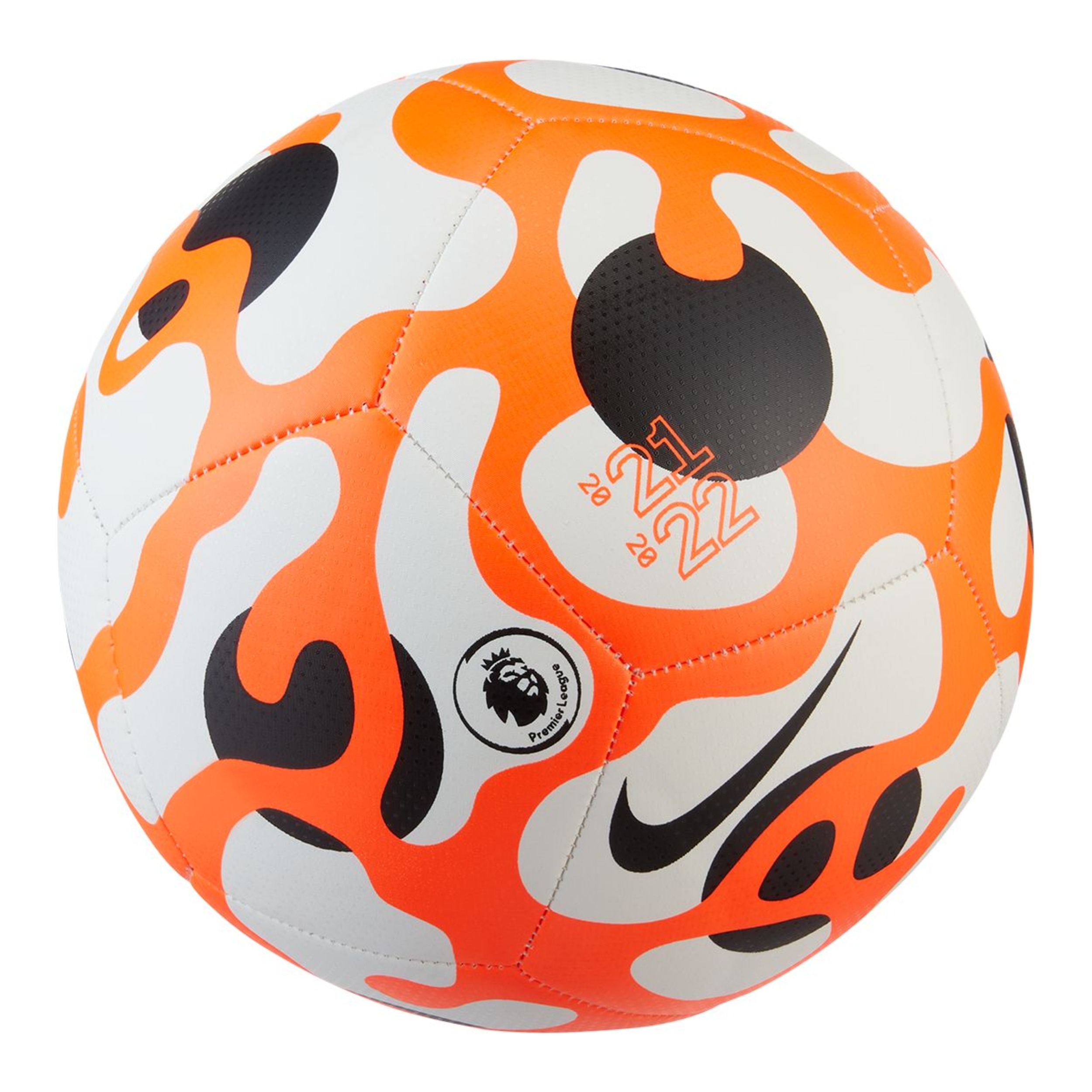 The Nike Premier League Pitch Soccer Ball - Size 5 was designed for intense training sessions and footwork drills that will take your game to the next level. The 12-panel machine-stitched synthetic leather casing maintains a perfect round shape practice after practice, while the rubber bladder keeps air pressure consistent so you can focus on improving your touch and technique. Whether you're working on passing combinations, crossing and finishing moves, or dribbling footwork, the Premier League Ball delivers a soft yet responsive feel that enhances your control and touch. The classic white and red colorway pays homage to the beautiful game's roots while complementing any pitch.