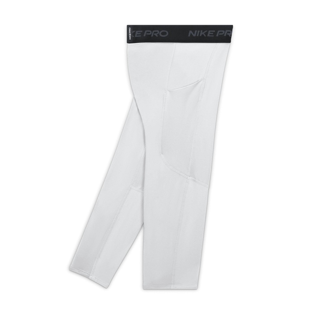 The Nike Pro Boys' Dri-FIT 3/4 Tights are pro-choice on every surface to help keep you cool and comfortable while you play. The knees are reinforced, so whether you're chalk drawing or at soccer practice, you can play with confidence. This 3/4-length style can be worn alone or under your shorts or uniform so you can comfortably go all out until the clock reads 0:00.