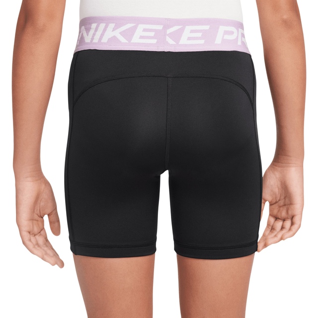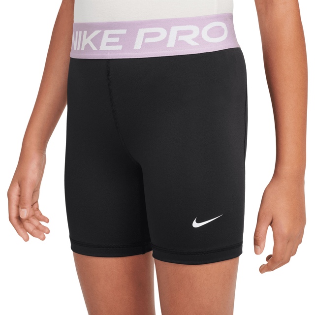 The Nike Pro Girls' Dri-FIT 5 Inch Shorts combine athletic performance with versatile style. Crafted with Nike's innovative Dri-FIT moisture-wicking technology, these stretchy knit shorts pull perspiration away from your skin to keep you dry and comfortable during any athletic activity. The reinforced seams follow your body's natural movements, while the elastic waistband with branded Nike Pro graphics provides a secure, body-hugging fit.