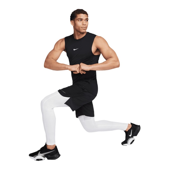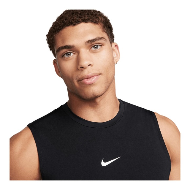 The Nike Pro Men's Dri-FIT Slim Tank Top is a part of the Nike Pro collection to help you feel confident and push your best—no matter if you're starting up regular exercise or finishing your high-intensity workouts. This slim-fitting sleeveless tank top has a smooth and stretchy feel that you crave for the sports and activities you love.