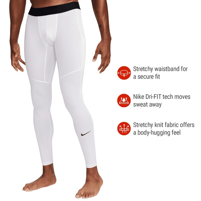 The Nike Pro Men's Dri-FIT Tights have a smooth and stretchy feel that's made to perform for all your favorite sports and activities. Pro tip: You can wear them alone or underneath your gym shorts—it's all your choice.