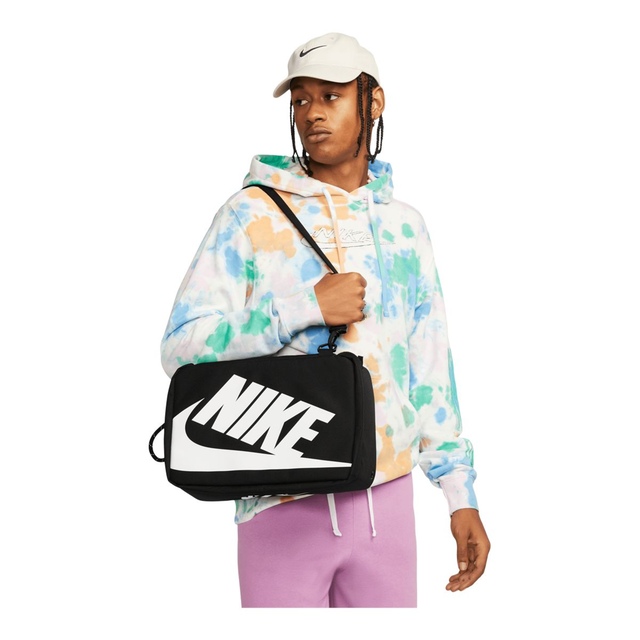 Nike Shoe Box Bag combines style and functionality, giving you a unique way to store and transport your favourite sneakers. Designed to mimic a classic Nike shoebox, it features a true flap opening for easy access to your shoes. The durable construction and prominent Nike logos ensure this bag stands up to daily use while showcasing your brand loyalty. With its clever organization features and removable crossbody strap, this shoe bag is perfect for sneakerheads on the move.