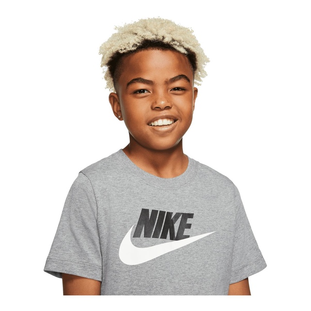 The classic Nike Sportswear Boys' Futura Icon T Shirt sports the brand's iconic logo. Made for comfort in breathable cotton, it's an everyday essential. This Nike tee helps keep kids comfortable, whatever their activity.