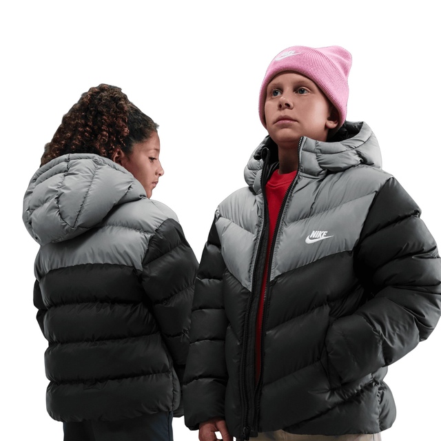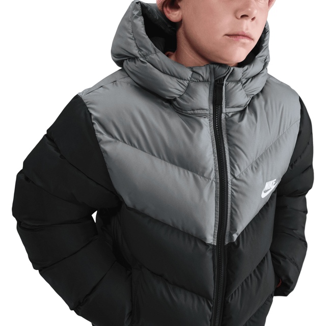 A chevron pattern on the front of this puffer nods to the Nike Windrunner, one of the first pieces of apparel Nike ever made