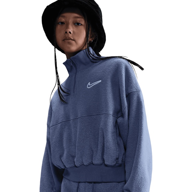 This roomy quarter-zip top has all the space and coziness you need in the cold. Its fleece is smooth on the outside and fuzzy on the inside for a fell that's as warm as it looks.