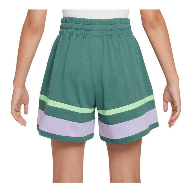 These Nike shorts serve up sporty style for active girls. Bold stripes and a slim fit give them an athletic look while the elastic waistband ensures all-day comfort. The lightweight knit fabric wicks moisture to keep you cool, dry and focused on your game. Built for the court yet stylish enough for everyday wear, these shorts let you take your athleisure look to the next level. The roomy design allows free movement during playtime while the internal drawcord provides a customizable fit. With their breathable feel and sweat-wicking fabric, these shorts will quickly become your new go-to for sports or leisure.