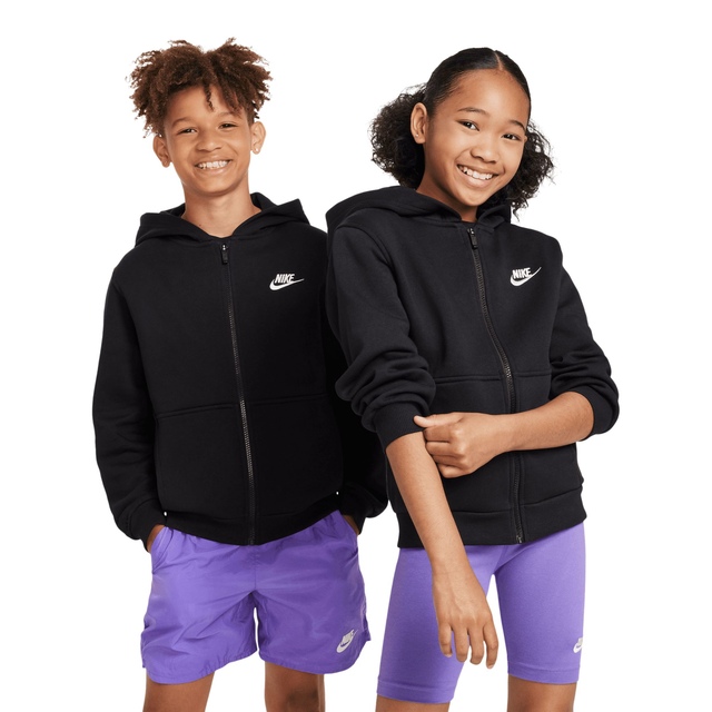 The Nike Sportswear Kids' LBR Club Fleece Full Zip Hoodie offers cozy comfort with its smooth exterior and soft, brushed interior. This lightweight fleece is perfect for layering when extra warmth is needed.