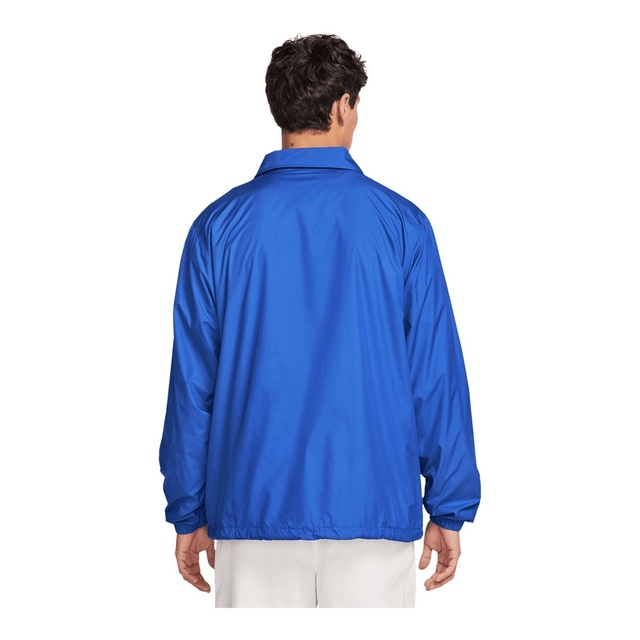 Stay comfortable and stylish with the Nike Sportswear Men's Club Coaches' Jacket. Designed with smooth, lightweight woven fabric and soft cotton lining, this jacket offers a relaxed fit that allows easy movement and layering. The embroidered Nike Futura logo adds a sleek touch, while the adjustable drawcord hem provides a customizable fit for all-day wear.
