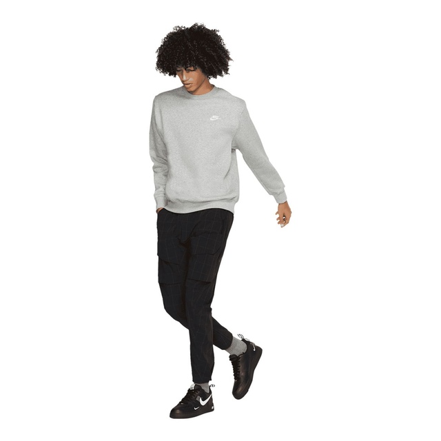The Nike Sportswear Men's Club Fleece Sweatshirt beautifully blends the luxurious warmth of fleece with the timeless appeal of the Nike collection. The sweatshirt is crafted from a brushed-back fleece material that offers a smooth texture against the skin and features a sleek yet subtle style, making it perfect for everyday wear. It is designed with ribbed hems and cuffs to ensure a snug fit and comes detailed with an embroidered logo that gives the apparel an authentic touch. The relaxed-fit silhouette and effortless feel of the mens sweatshirt make it a must-have for casual occasions.