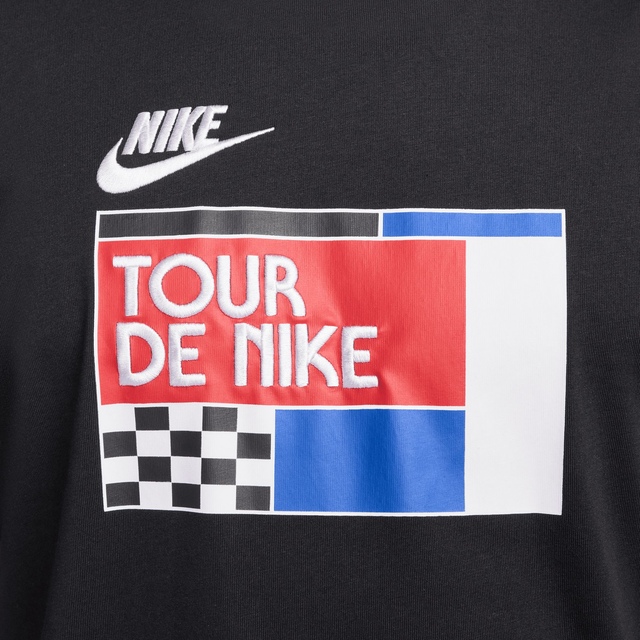 The Nike Sportswear Men's Tour DE Nike T Shirt is an ultra-comfortable, relaxed-fitting t-shirt made from soft, midweight cotton fabric. With dropped shoulders, longer sleeves and a roomy fit through the body and hips, this tee delivers a laidback, casual look with a slight drape. Perfect for any journey, the soft cotton construction ensures all-day comfort.