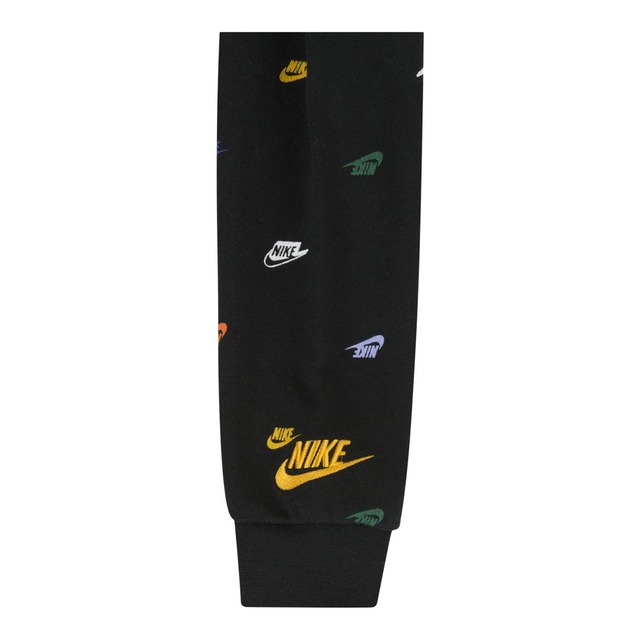 Light weight french terry pullover with long sleeves, ribbed cuffs and a standard hood. Light weight sueded fleece pants with an elastic waistband and ribbed ankle cuffs. Finished with a Nike logo all over print and matching Nike logos.